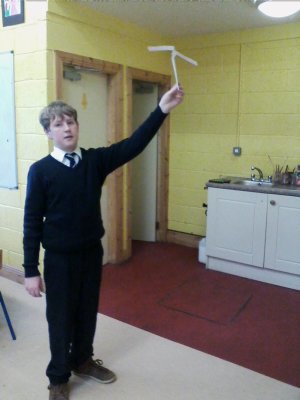 We made helicopters from templates. The larger ones flew longer than the smaller ones (clockwise). More surface area=more air resistance!